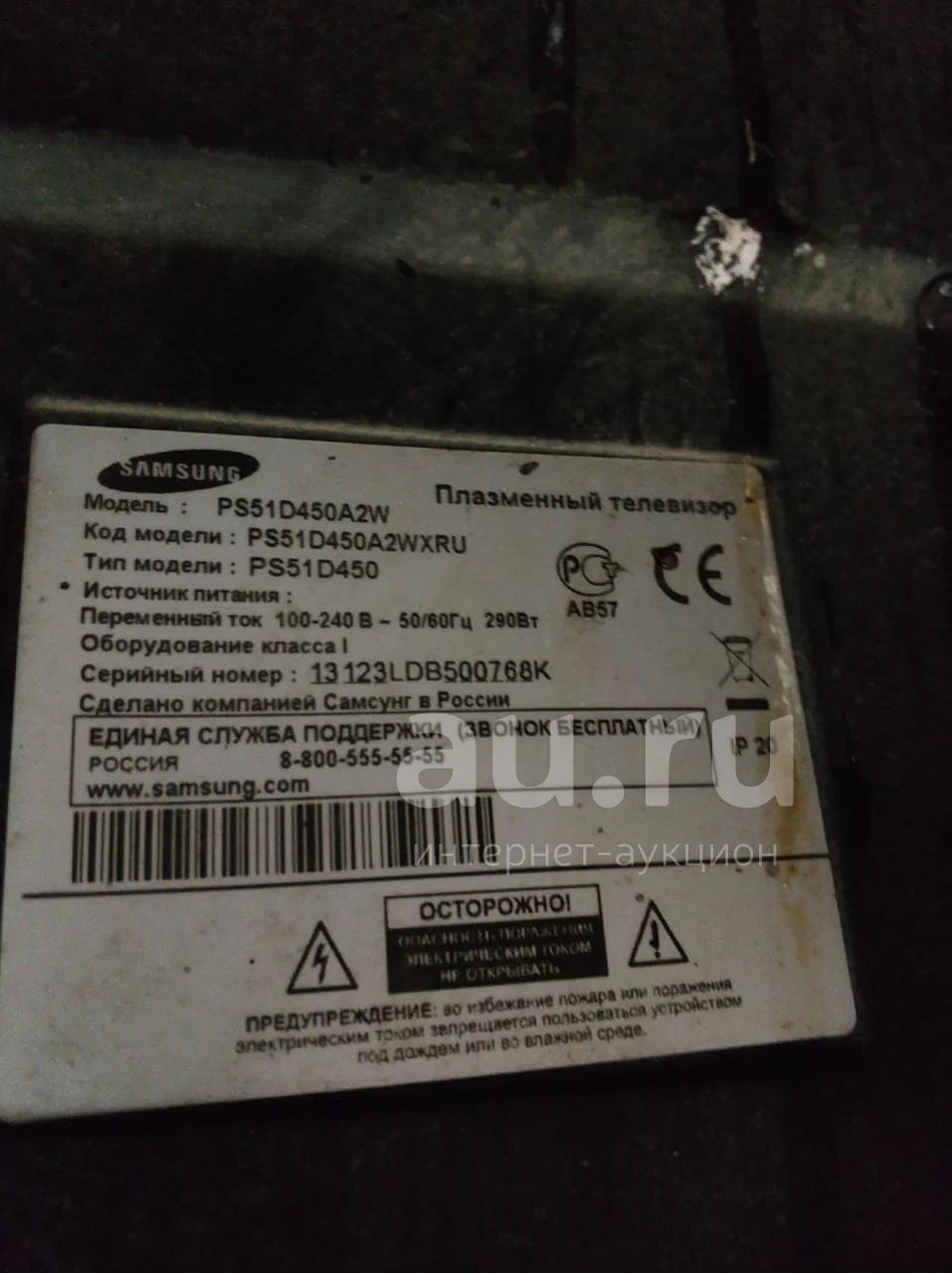 | Тип телевизора | Плазменный |