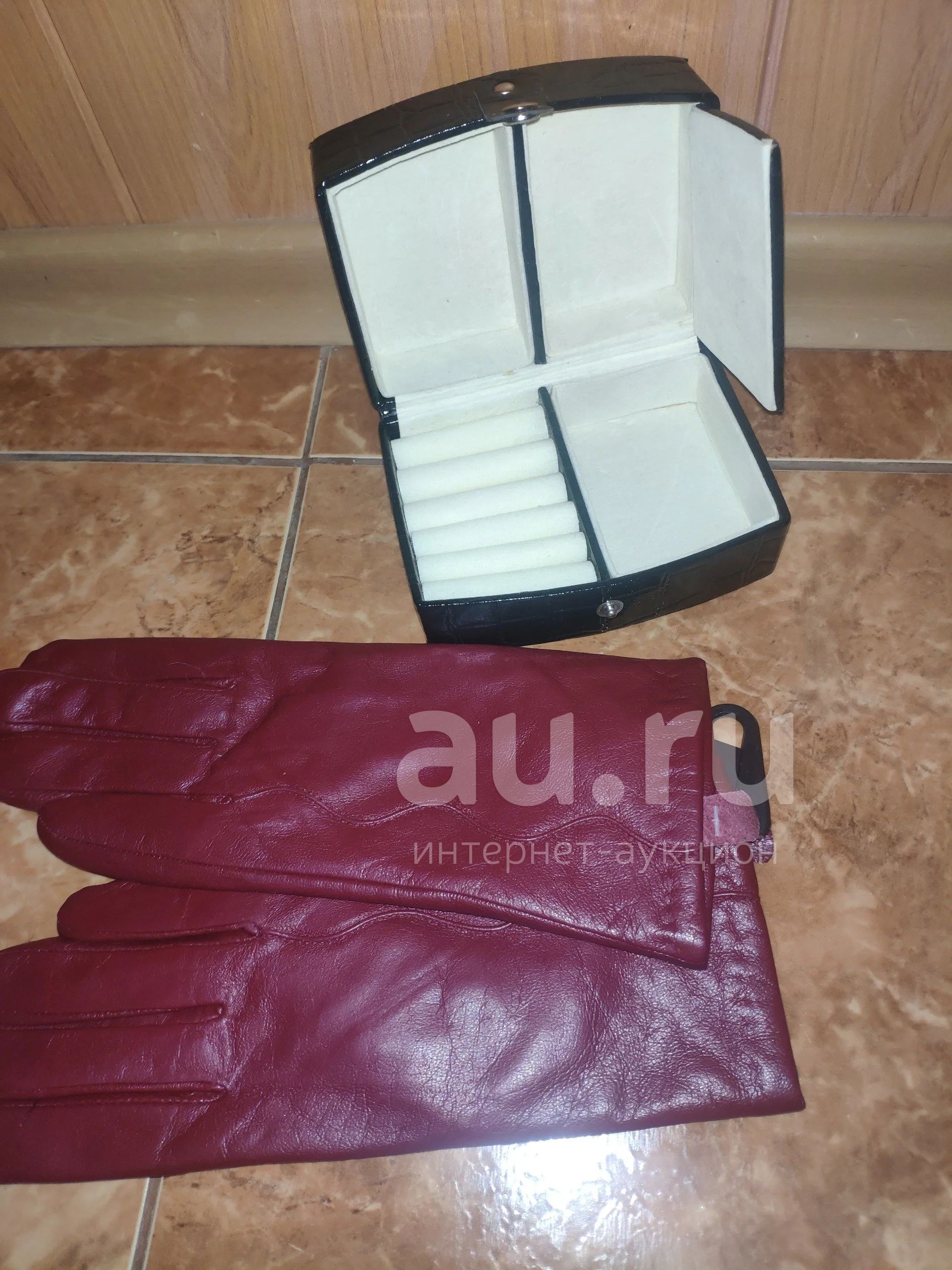 Шкатулка 13/6 см + перчатки женские натуральная кожа р7#2