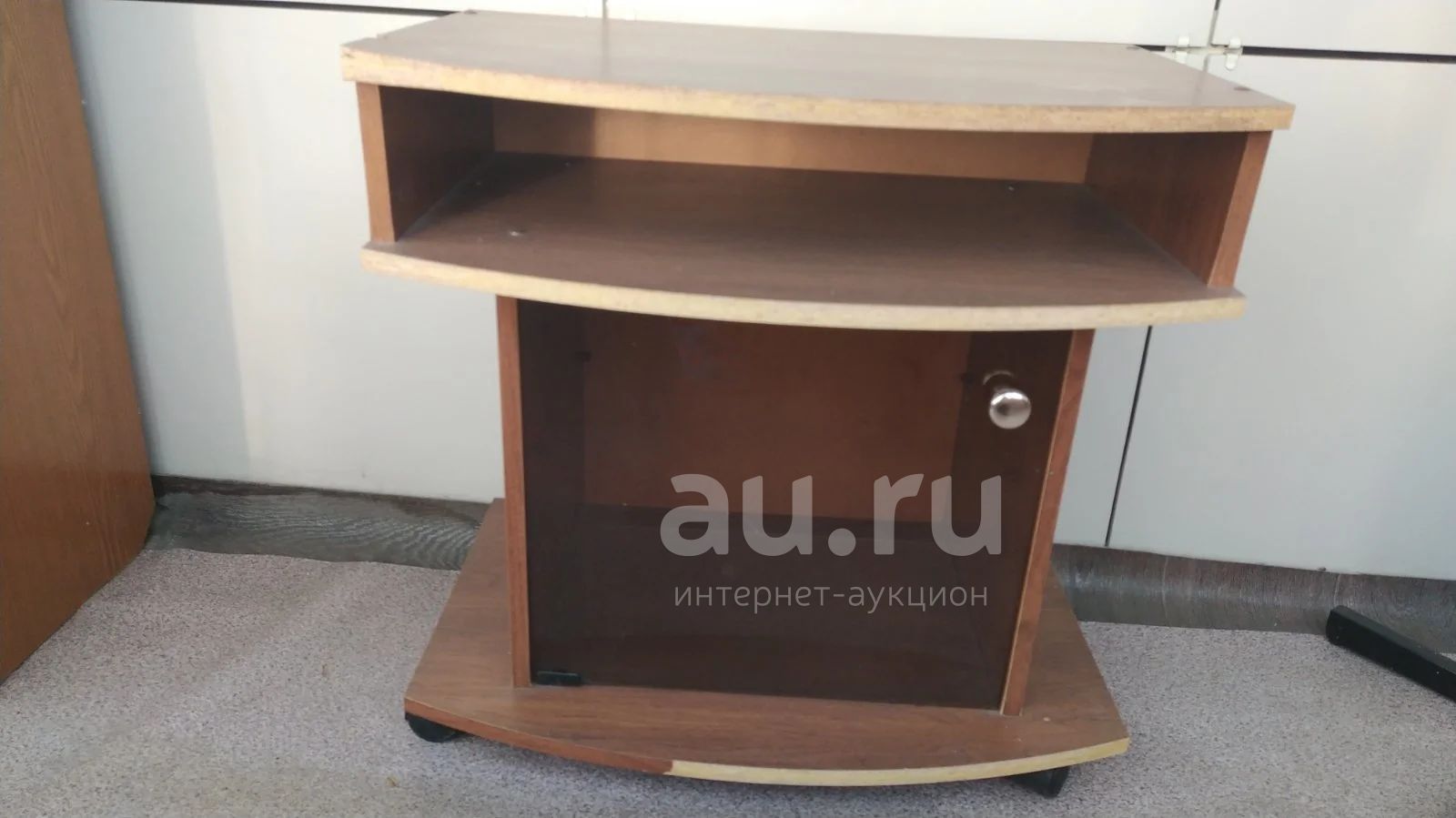 Тумба на колёсиках. Отклетлся кант почти по всей тумбе, есть скол на столешницей (см. Внимательно фото)