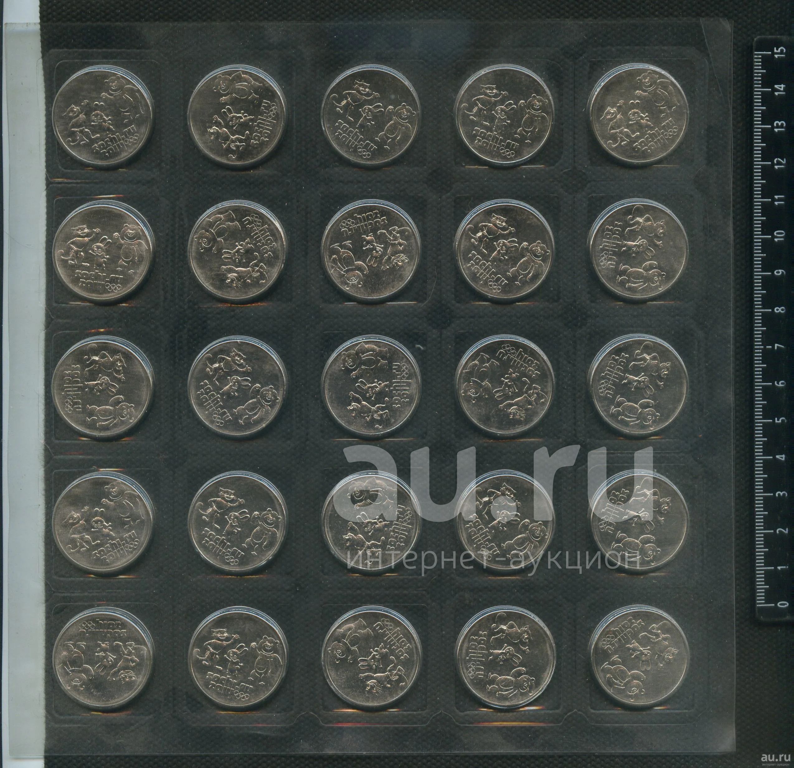 25 рублей 2014 года,Сочи,Талисманы ,полный лист в блистере,25 штук лотом (современная Россия юбилейка)