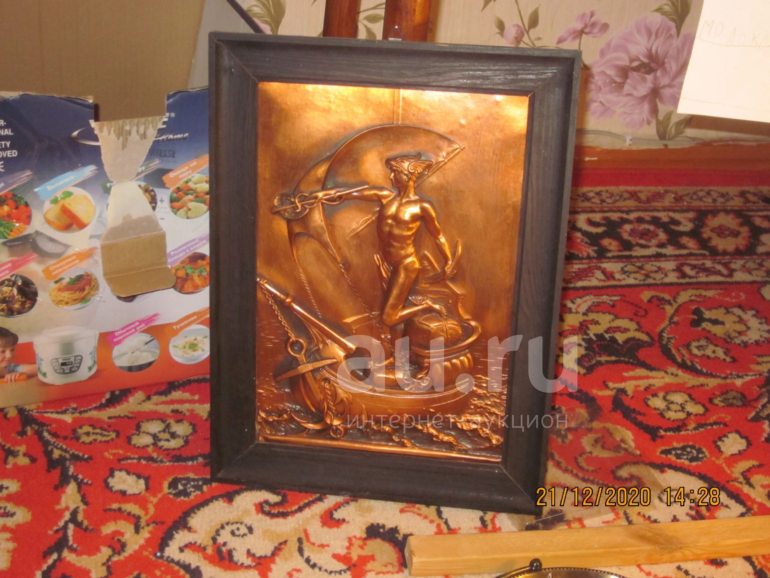 Продаю Барельеф из Меди. "Меркурий", медный лист. размер 30х20см (с деревянной рамкой 37,5х28 см). На тыльной стороне записей нет.