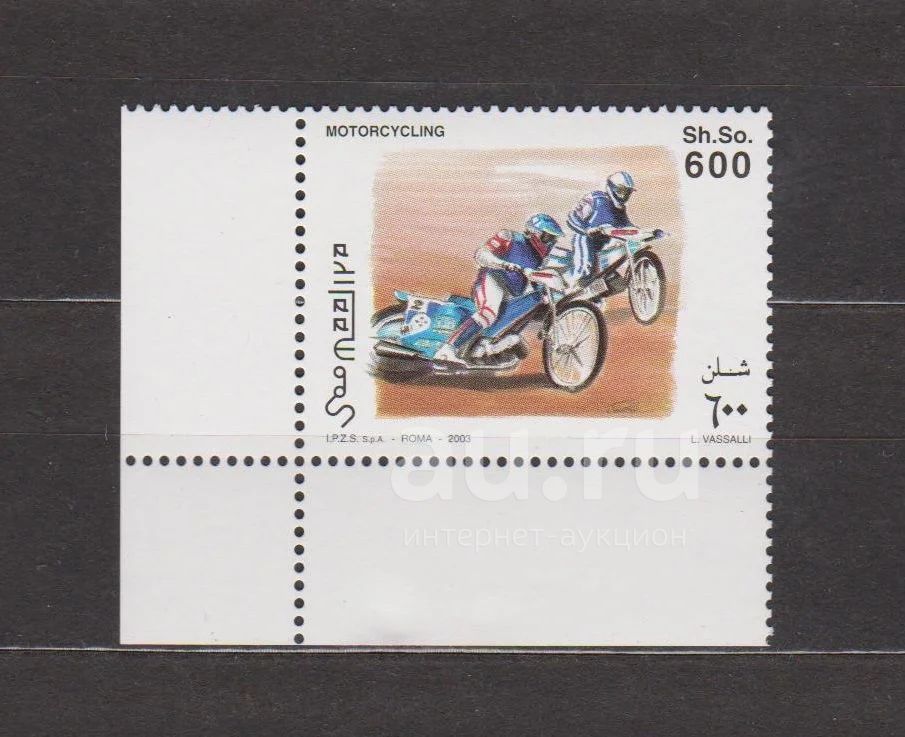 Сомали, 2003 г. Чистая марка (угол) "Спорт.Мотогонки". Состояние идеальное, в коллекцию.(Расположение угла может быть другим).