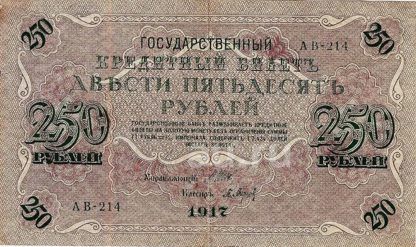 250 рублей 1917 год. Хорошая. серия АВ. С рубля не упустите.