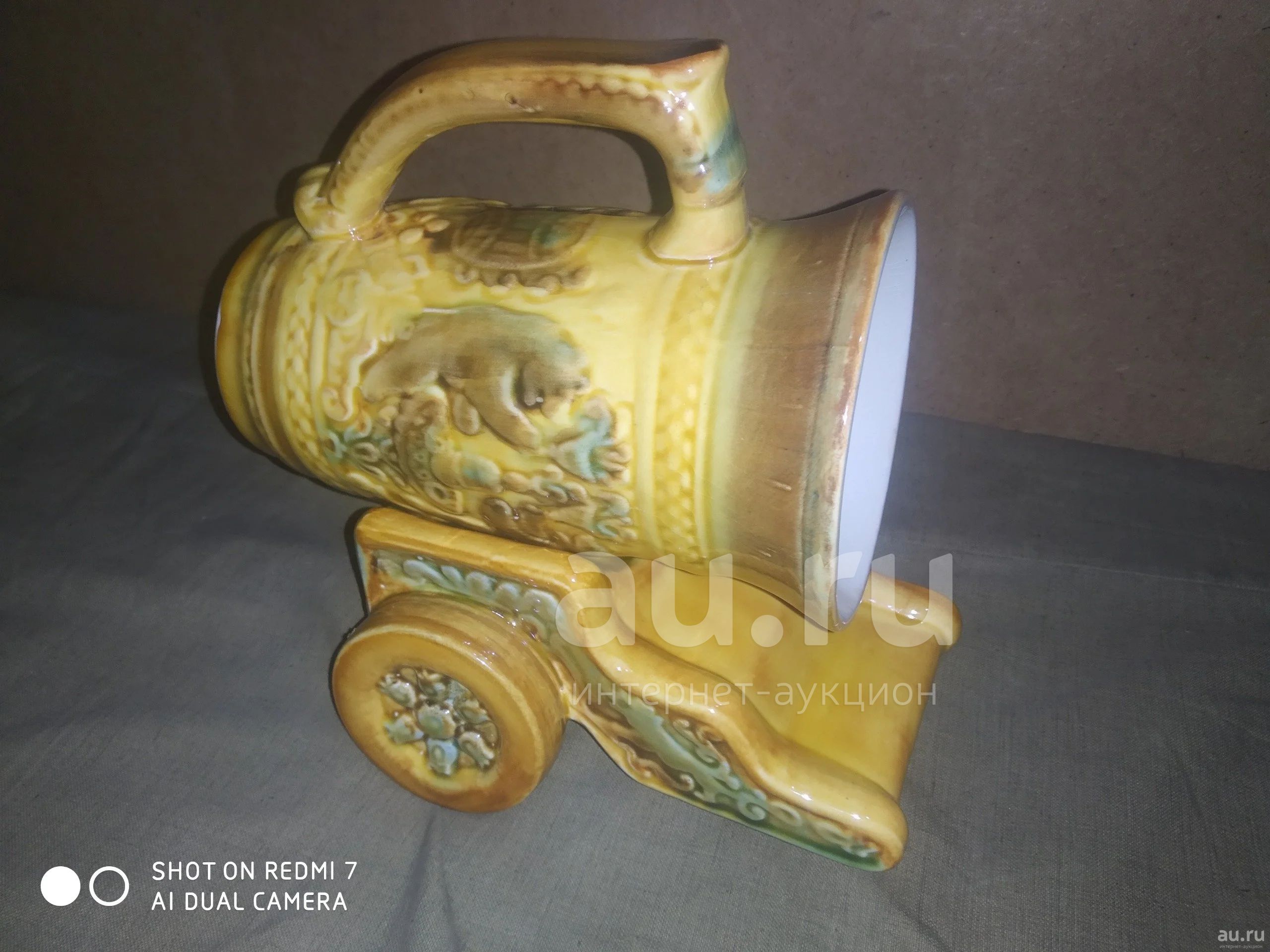 Кружка-Пушка (Кружка пивная ЗиК-Конаковский фаянсовый завод)...Рельефная,ручная роспись,антикварная,таких не выпускают уже давно...Без сколов,состояние хорошее