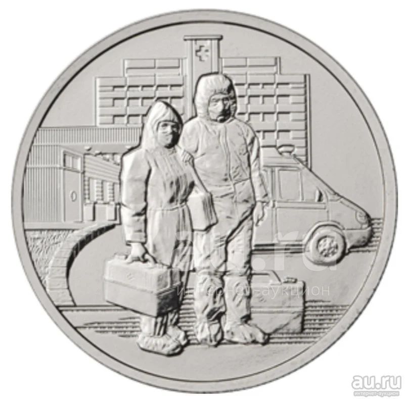 25 рублей 2020 года. Медики. Самоотверженный труд медицинских работников. Без обращения. С рубля.