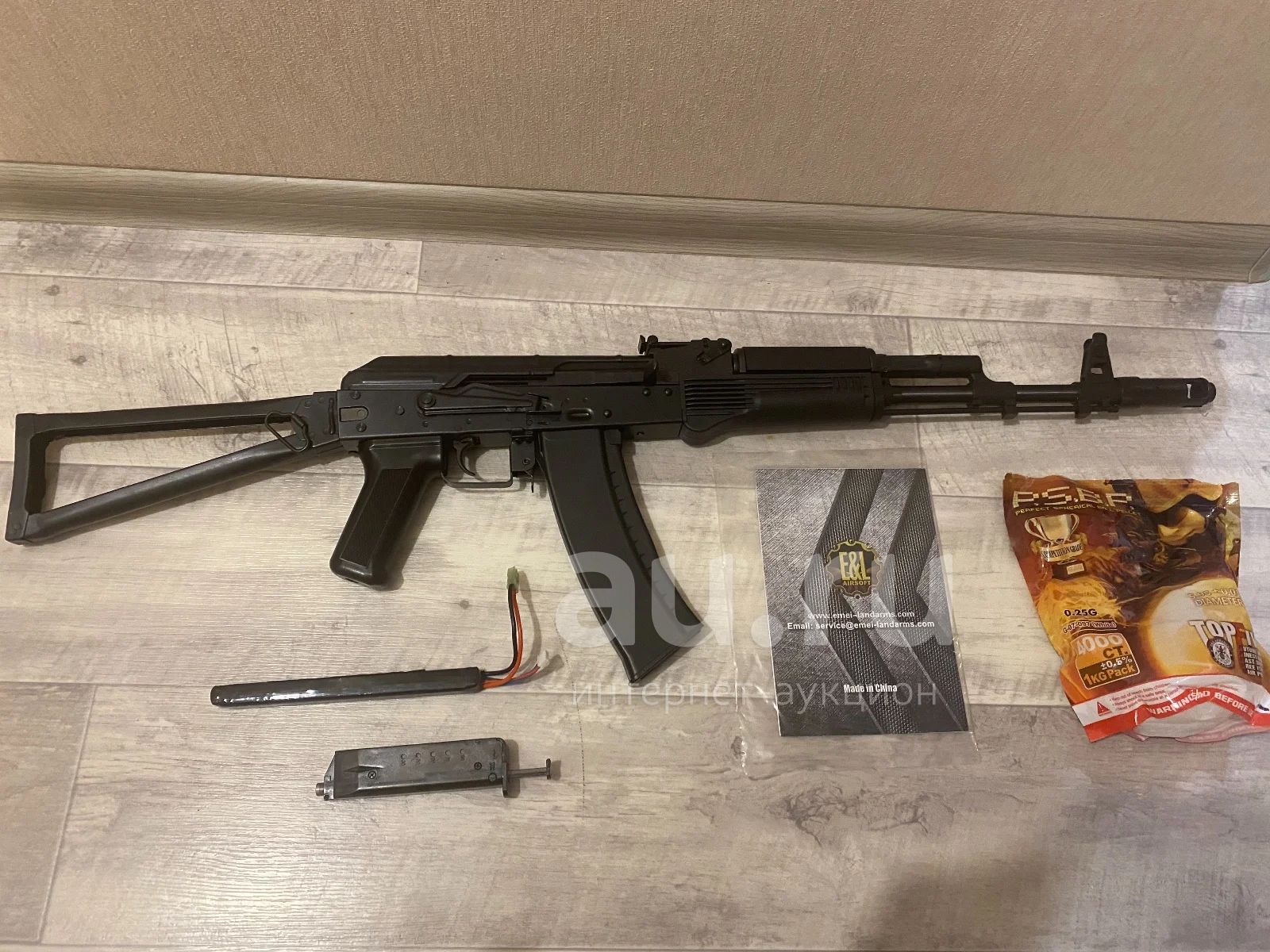 E&L АКС-74 MH Gen.2 оснащен регулируемой камерой хоп-ап и гирбоксом версии 3, имеющим быстросъемную пружину и хороший запас прочности, позволяющий производить улучшения модификации. Снаряды для автомата стандартные – ВВ-шарики калибра 6 мм. В механическом магазине – 120 боеприпасов. На вылете шарики получают скорость до 130 м/с.