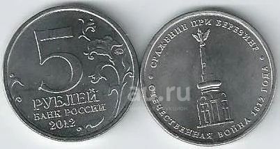 5 рублей 2012 год. Сражение при Березине . С рубля .