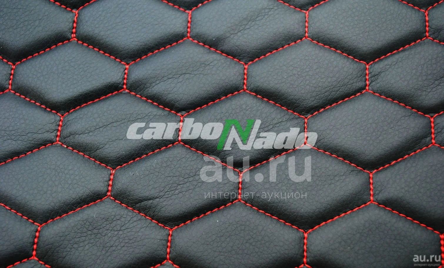 Экокожа Черная Соты красные