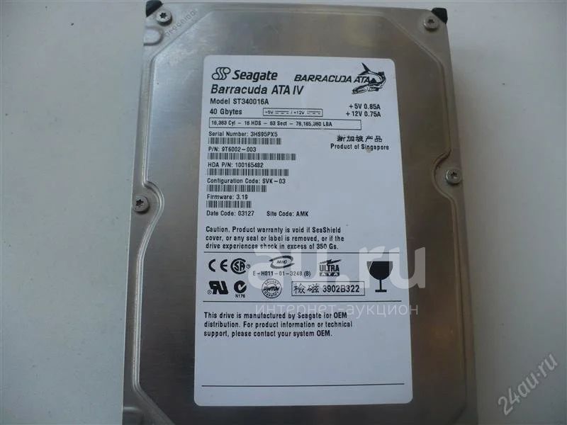 Винт 40Gb IDE,возможно неисправный.