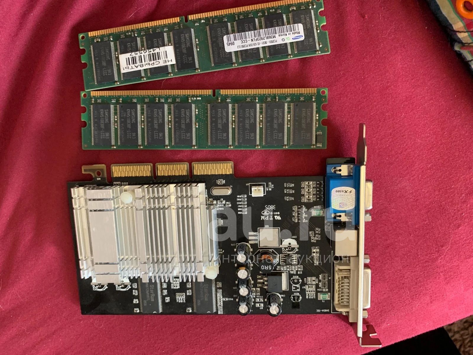 Видео карта fx5500 и две планки памяти, состояние не известно. С рубля
