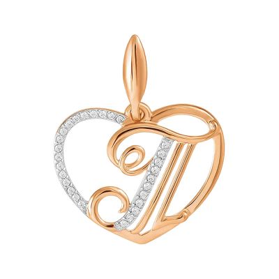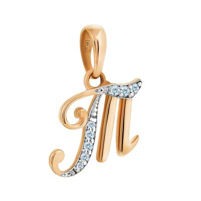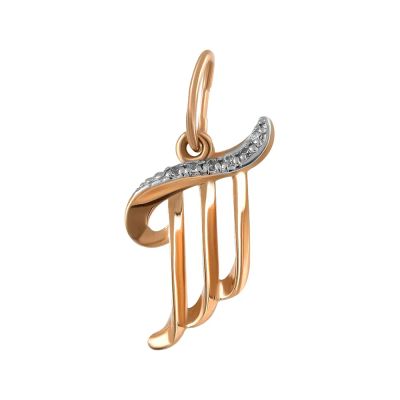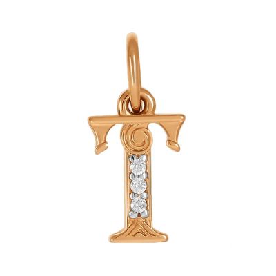 Золотая подвеска в виде буквы Т с фианитами. В подарочной упаковке. Имеется пломба и бирка магазина.