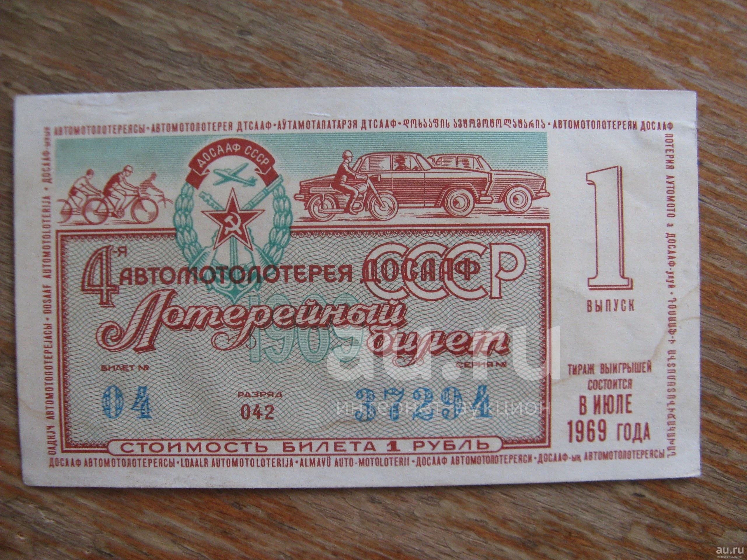 Лотерейный билет 1969 года. ДОСААФ СССР. Выпуск 1.