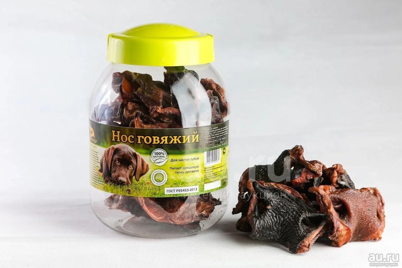 Лакомство для собак Нос говяжий сушеный, пэт банка 0,5л (90г) (Внимательно читаем описание лота)
