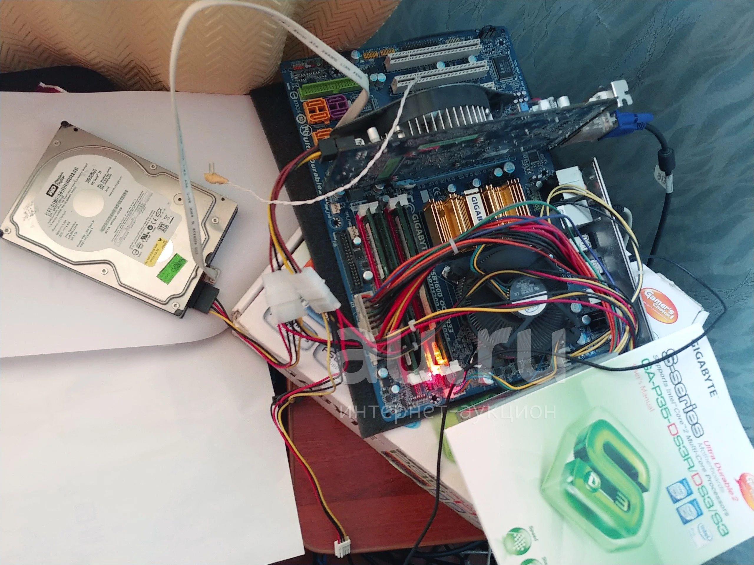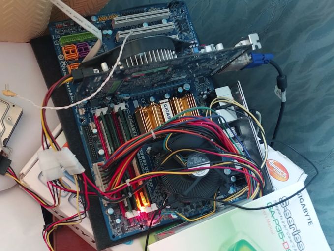 1) материнская плата GA-P35DS3R на твердотельных конденсаторах, 6 SATA, 4 DDR2
