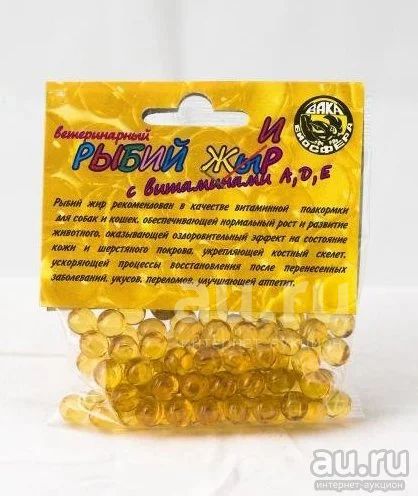 Натуральный ветеринарный рыбий жир с витаминами A, D, E. Рекомендован в качестве витаминной подкормки для собак и кошек, обеспечивающей нормальный рост и развитие животного, оказывающей оздоровительный эффект на состояние кожи и шерстяного покрова, укрепляющей костный скелет, ускоряющей процессы восстановления после перенесенных заболеваний, укусов, переломов, улучшающей аппетит. Способ применения: крупные породы собак - по 3 капсулы три раза в день; средние породы - по 2 капсулы два раза в день; мелкие породы и кошки - по 1 капсуле два раза в день.