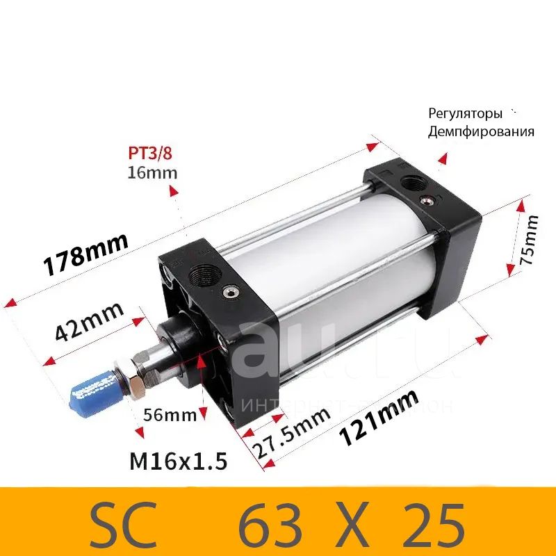 Пневмоцилиндр SC 63X25, D=63, ход 25, G3/8