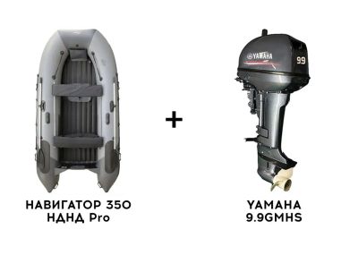 Лодка ПВХ НАВИГАТОР 350 НДНД Pro + 2х-тактный лодочный мотор YAMAHA 9....