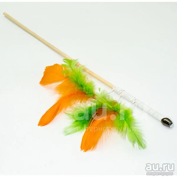 Дразнилка - удочка Салют из перьев на деревянной палочке 50см, Кот Лукас