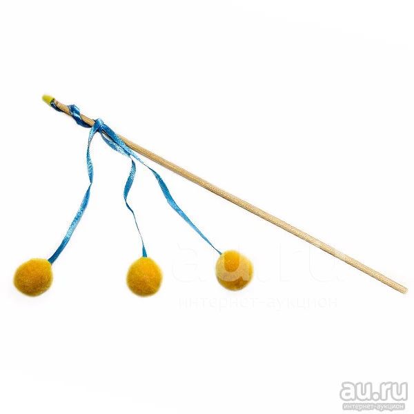 Дразнилка - удочка Три шарика на лентах на деревянной палочке 50см, Кот Лукас