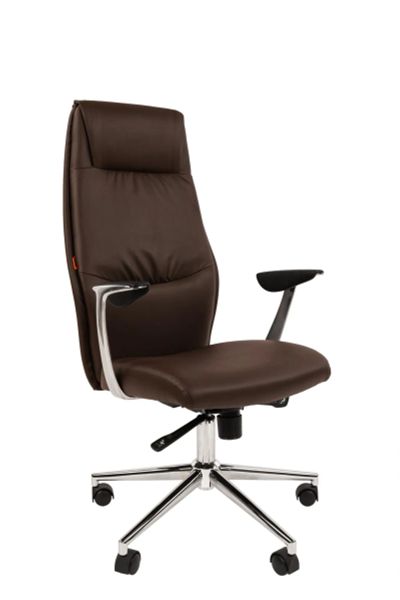 Кресло офисное компьютерное, руководителя, кожзам коричневый