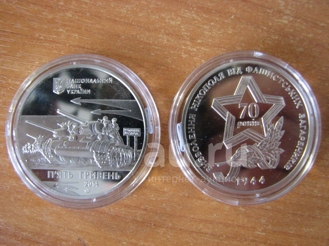 Украина 5 гривен 2014 года. Освобождение Никополя. К 70-летию освобождения Украины от фашистских захватчиков. В капсуле.Новая.