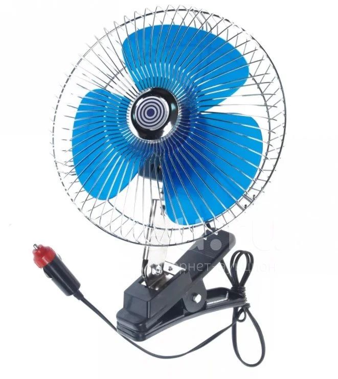 Вентилятор в салон 6" 12V прищепка с поворотом хром металл