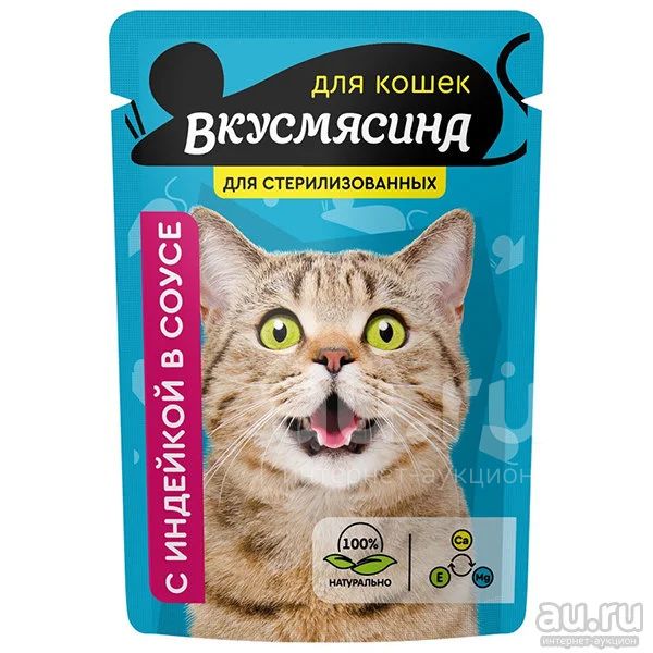 Влажный корм для стерилизованных кошек Вкусмясина Кусочки с Индейкой в соусе, пауч, 85гр
