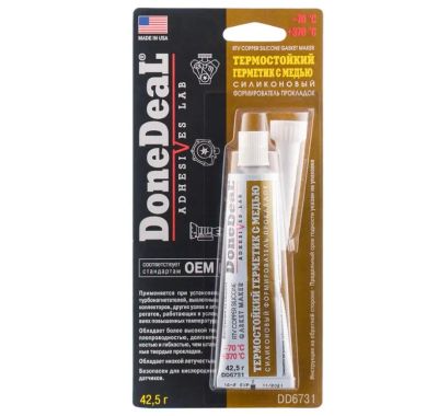 Термостойкий серый силиконовый формирователь прокладок DONE DEAL GRAY RTV SILICONE GASKET MAKER. Отличается относительно невысокой вязкостью и повышенной водостойкостью. Рекомендован для гарантийного ремонта корейских и японских автомобилей.