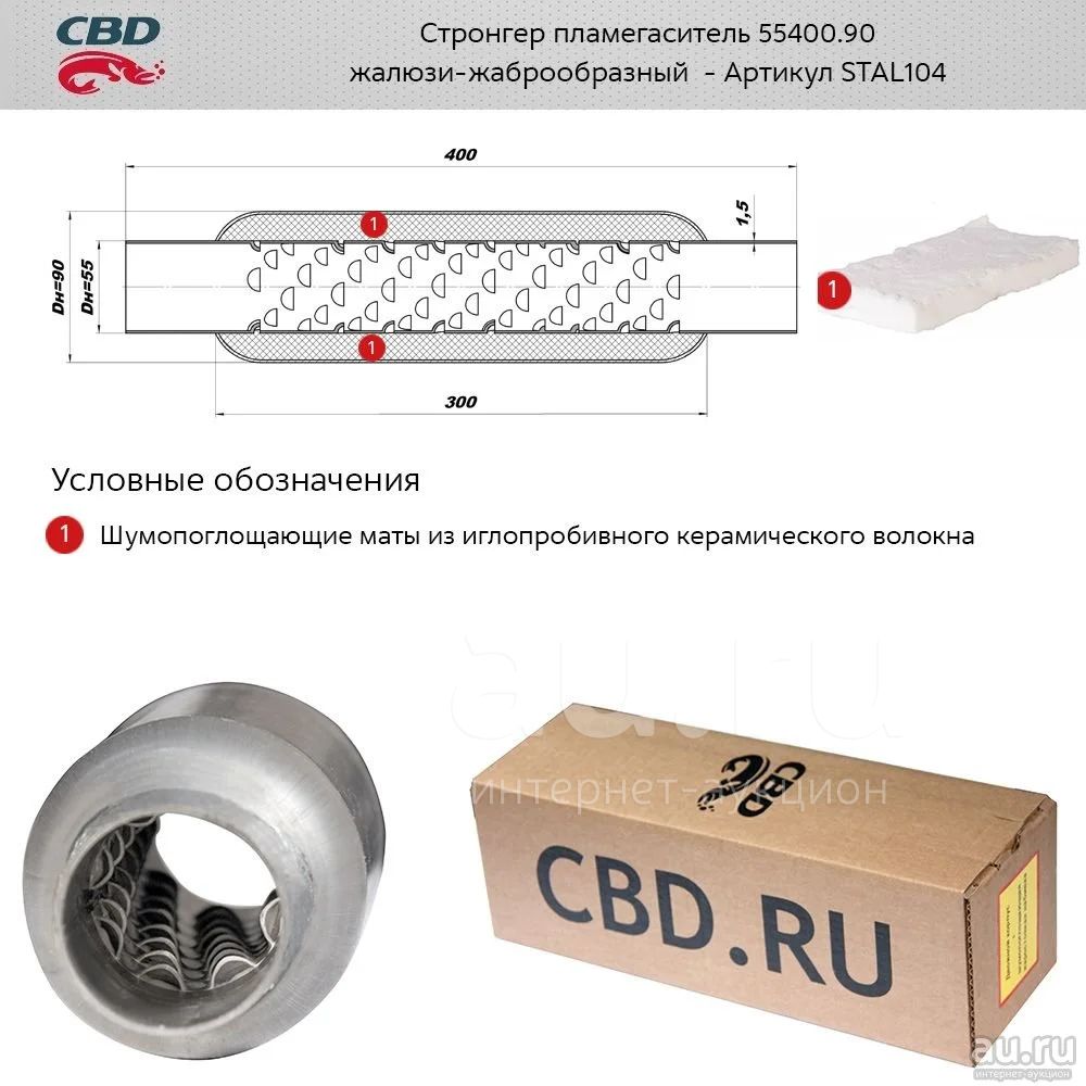 Стронгер пламегаситель 55400.90 (под трубу 55мм. 90x400мм) жаброобразный. STAL104