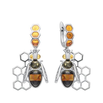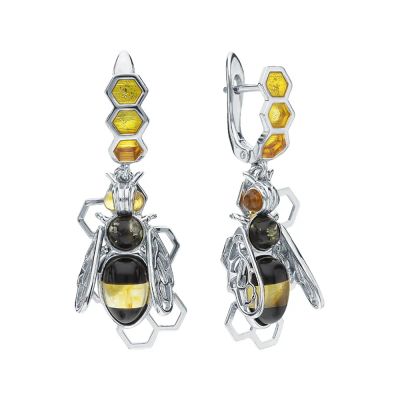 Серьги серебряные с позолотой и янтарем. Подвеска.