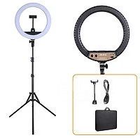 Уценка. Кольцевая лампа (36см) со штативом (70-210см) Ring Light ZB-R 14. Новая с чехлом. Регулировка температуры свечения 3200k-5600k и яркости 10-100%. С USB портом для зарядки.