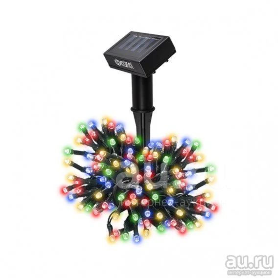 ОПИСАНИЕ. Ландшафтный светодиодный светильник "ГИРЛЯНДА" с солнечной батареей. Предназначен для декоративной подсветки кустарников, альпийских горок, террас, веранд на садовых и дачных участках, а также на дворовых территориях. Автоматическое включение/выключение при наступлении темного/светлого времени суток (датчик освещенности). Аморфная светодиодная панель 5 х 8 см. 2 режима работы (постоянный и мигающий). ТЕХНИЧЕСКИЕ ХАРАКТЕРИСТИКИ. Длина, м: 11,9 Источник света: 100 цветных светодиодов Тип аккумулятора: 1 x AAA 600 мАч Ni-MH Тип упаковки: Цветная коробка Класс защиты: IP44 Вес, г: 192