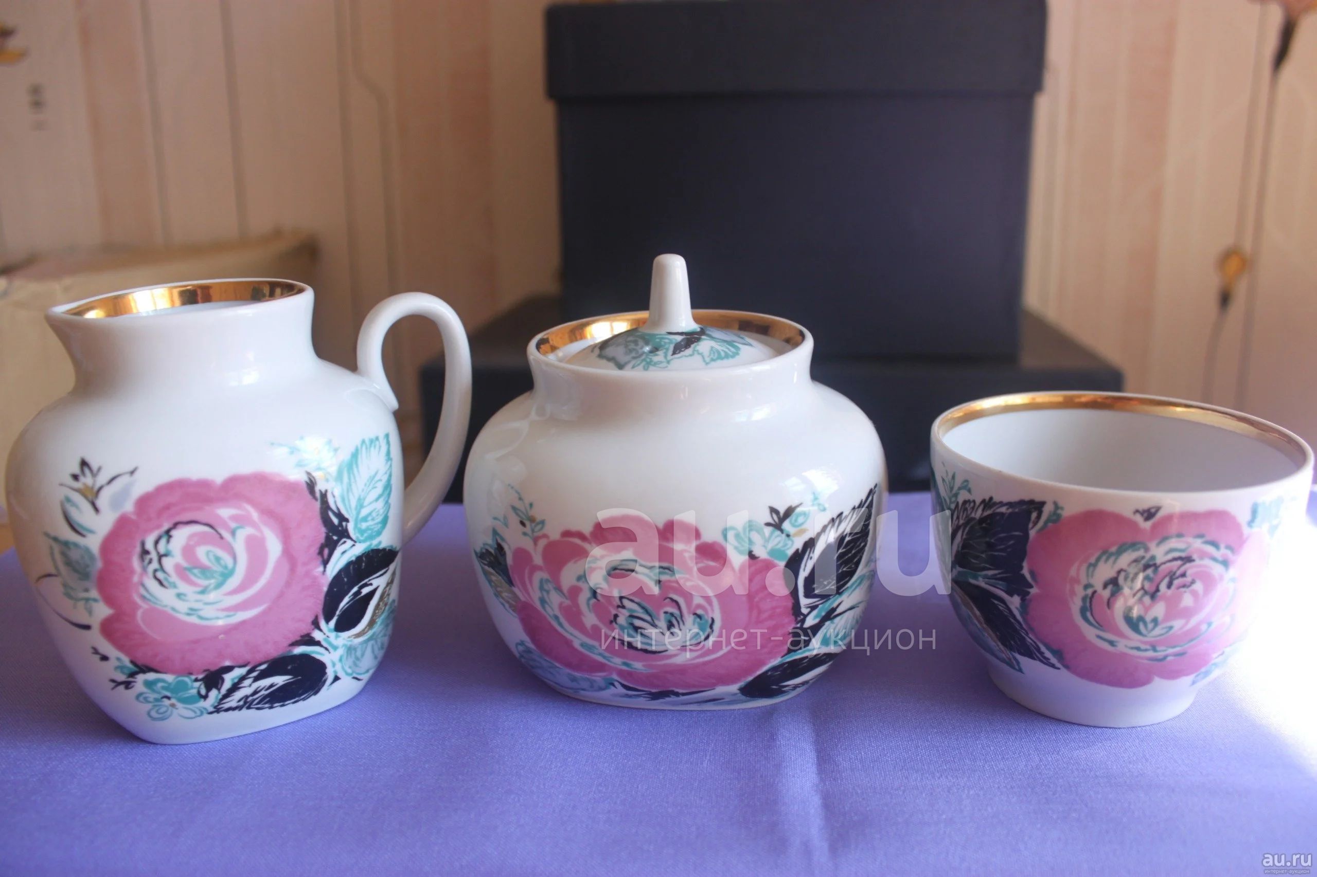 Сахарница,сливочник и кружка из сервиза,,Роза,,ЛФЗ одним лотом.Раритет из СССР