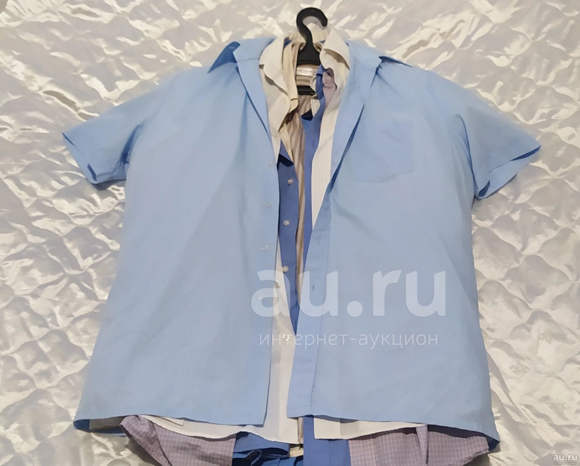 Девять мужских рубашек! Есть и с коротким и длинным рукавом. Все целые,чистые. Носились мало. Вещи фирменные! Некоторые надеты раз-два. Размер 48-50. Плюс плечики и чехол для хранения! Всё одним лотом!