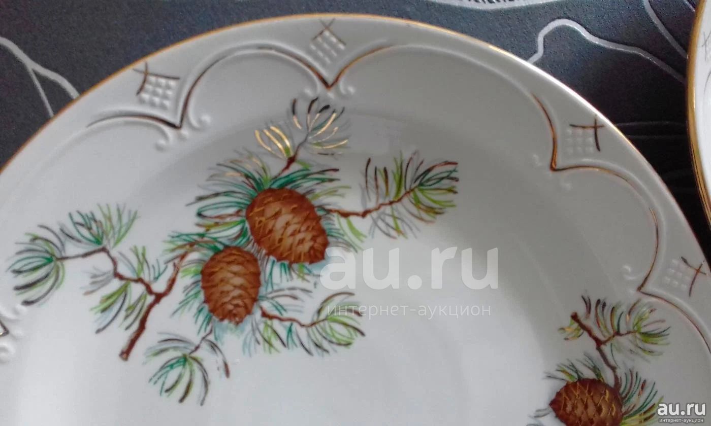 Блюдо большое овальное 36 см. (ХАЙТА. СССР) "Еловые шишки" (тарелка плоская)Фарфор.. Выпуклый декор по краю, роспись ручная с элементами золочения. Цена : 700 р. Красноярск !!!