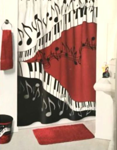 370руб.🖤♡❤️️ Штора для ванной ZALEL 180 х 180 см из высококачественной ткани красная черная белая "Джаз", Турция / рояль пианино клавиши нотки музыка шторка шторы шторки в ванную ванну душ ванны душа занавес занавесь занавесы занавеси занавеска занавески /