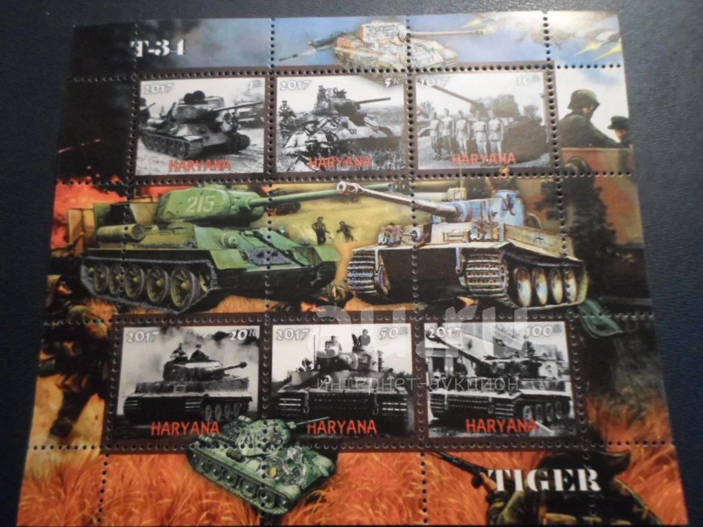 Блок марки танки Т-34 и Тигр. Торги с рубля.