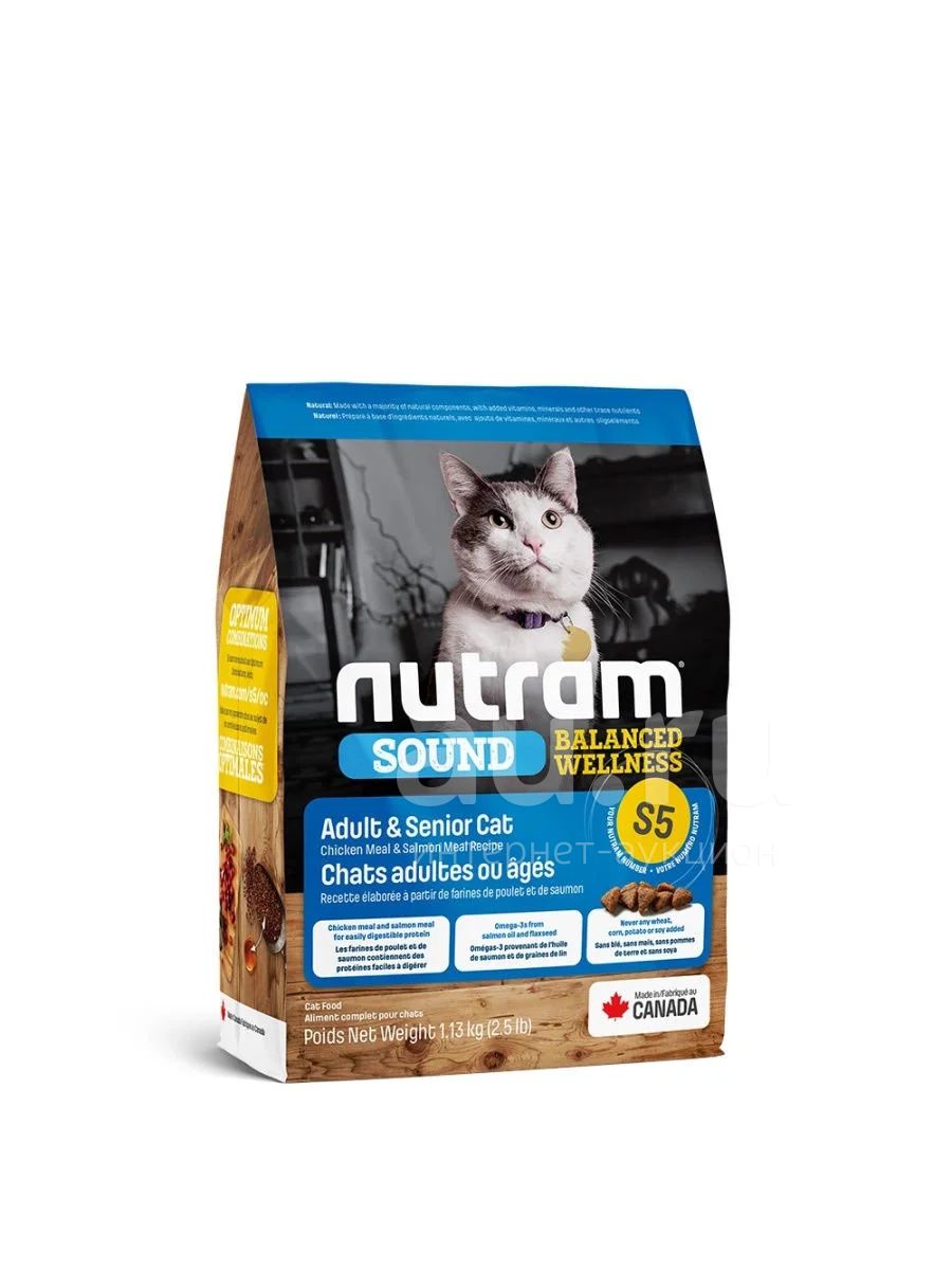 Сухое питание S5 Nutram холистик для взрослых и пожилых кошек - это полезный, богатый питательными веществами корм. Он заботится о развитии и здоровье, улучшает самочувствие по принципу «изнутри наружу».