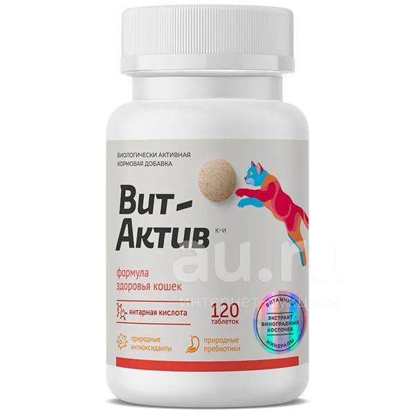 ВИТ-АКТИВ витаминно-кормовая добавка для кошек Формула здоровья 120 таблеток