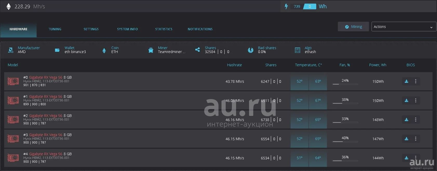mining ферма на 5 видеокартах gigabyte vega 56