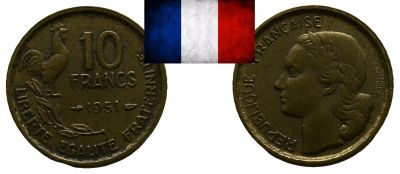 Франция 10 франков 1951 С 1 рубля