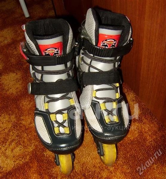 В хорошем состоянии. Пользовались мало. Не дешевые пластиковые. Удобно ноге, мягкая отделка внутри.