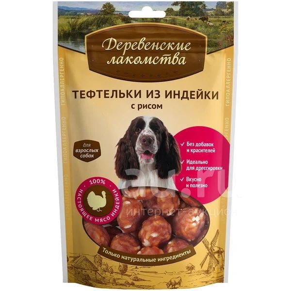 Деревенские лакомства для собак. Тефтельки из индейки с рисом, 85г