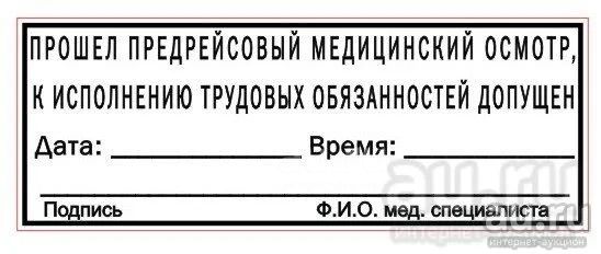 Штамп медосмотр пройден