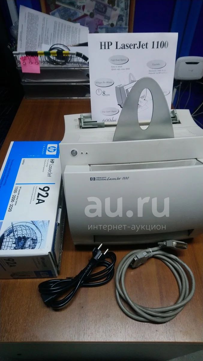 Продам HP LaserJet 1100 б/у + 2 дополнительных картриджа, один оригинал HP. Работает, немного скрипит, плохо печатает правую сторону. Подключение LPT.