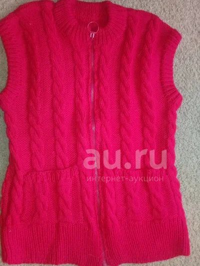 вязанная жилетка с двумя карманами на молнии, пряжа акрил детская пехорка, размер 46-48 ярко-красного цвета, очень мягкая и приятная на ощупь, новая