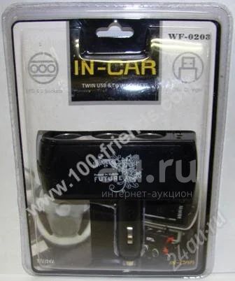 Разветвитель в авто (WF-0203) на 3 прикуривателя +USB разъем