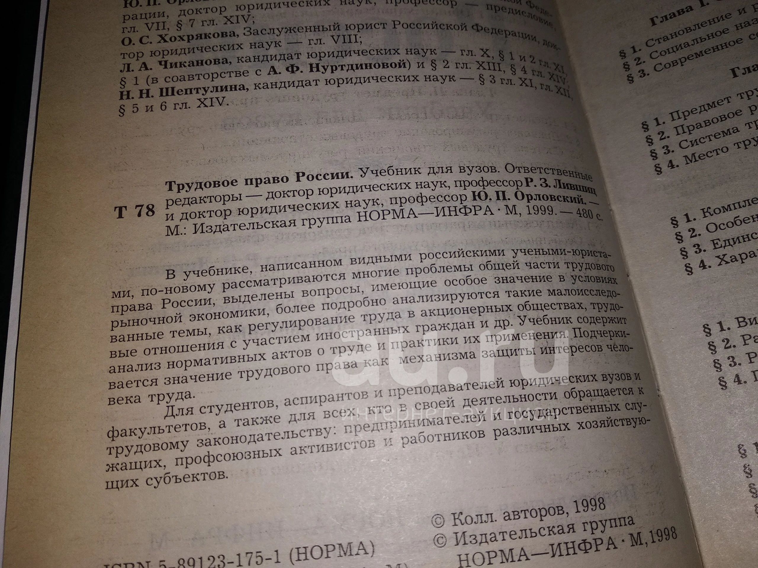Глазырин В.В., Лившиц Р.З., Нуртдинова А.Ф. и др. Трудовое право России. Учебник для вузов. М. Изд-во Инфра-М, Норма. 1998г. 474с. Твердый переплет, Обычный формат.