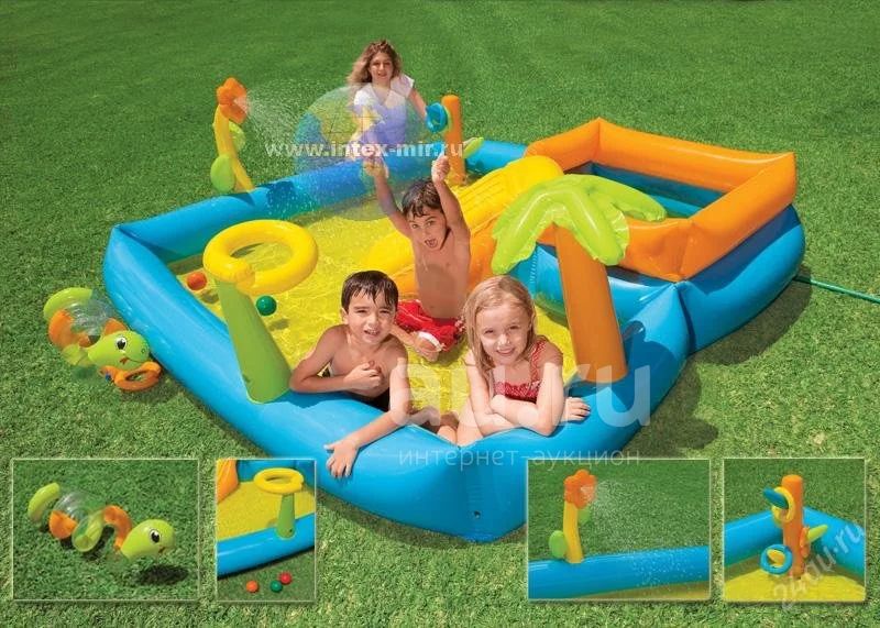Надувной игровой центр-бассейн с пальмой и горкой Intex 58466 Playground Pool (от 3 лет, 229 x 229 х 76 см, 159+114 л, без насоса, 6,6 кг), доставка, гарантия