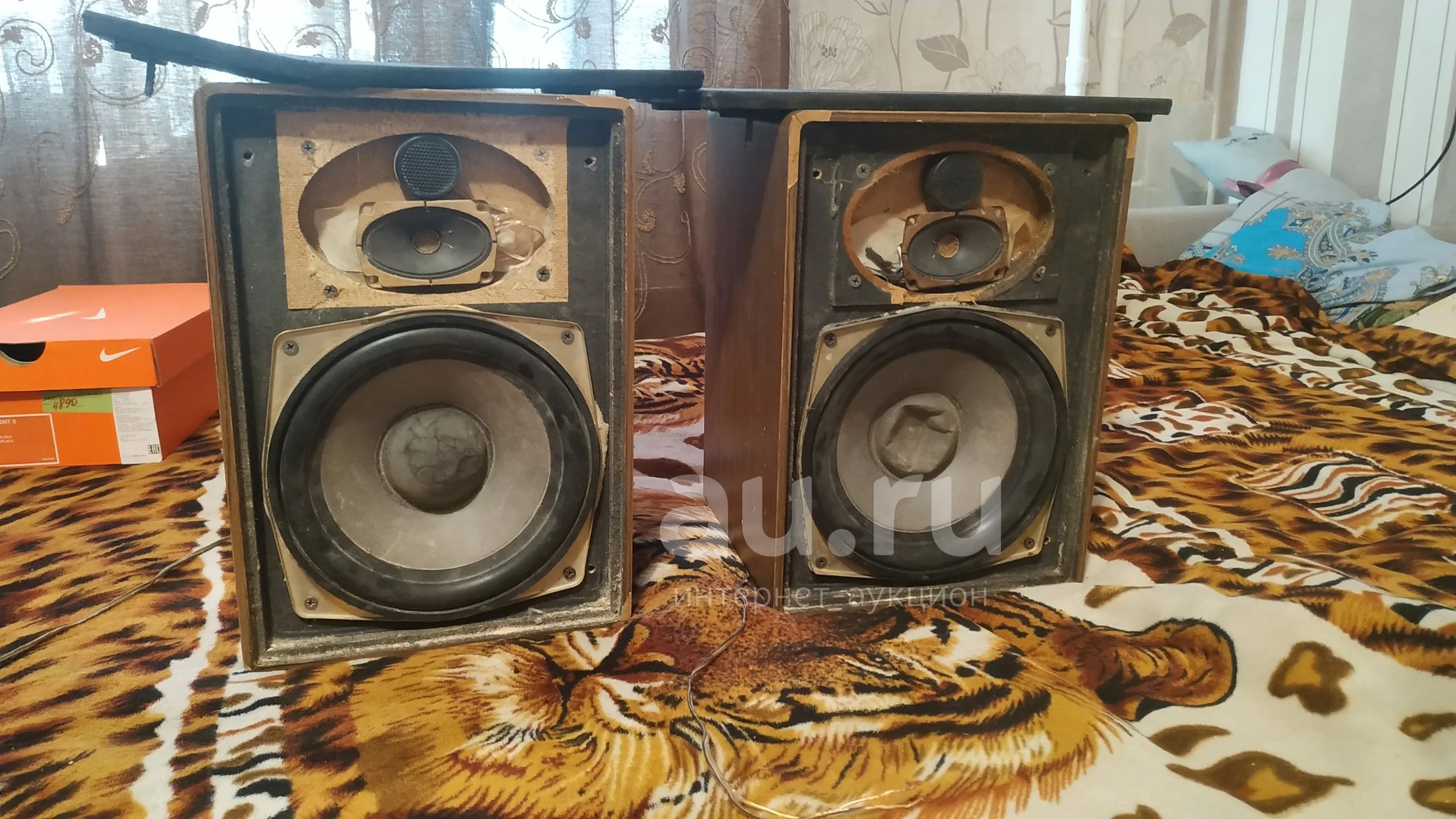 Колонки RTF. Один нч сгоревший. Играет, если нажать. Вч все целые. Колонка которая полностью жива, звучит отлично. Высокая чувствительность. Высокие отлично звучат. Низов прилично. Хорошие колонки. Низкочастотные по 20см.